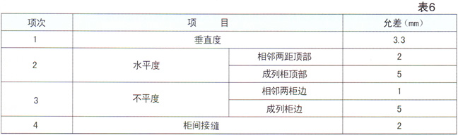 产品到达收货地点后,首先应当检查包装是否完整无损,发现问题应及时通知合同相关部门做好商务记录,共同分析原因,作好签证和善后处理。对于不立即安装的产品,应根据正常使用条件和电气设备暂时保管规程要求置于适当的场所,妥善保管。 1、产品的安装应按示意图进行(见图1~图3,表6~表8)。基础槽钢和采用螺栓固定方式时的螺栓由用户自备。主母线连接时如表面因运输、保管等原因有不平整时需平整后再连接紧固。 2、装置单独或成列安装时,其垂直度以及柜面不平整度和柜间疯子的偏差应符合表6规定。 ![]() |